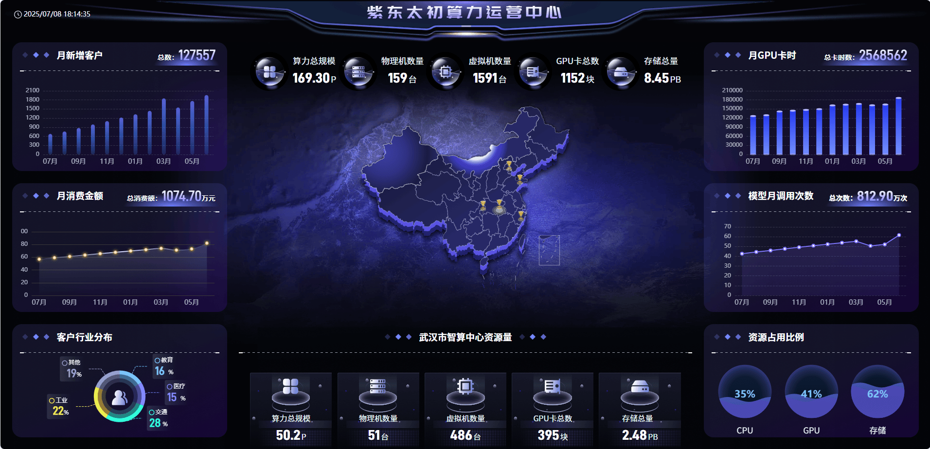 正在武汉人工智能研究院展厅,“紫东太初云”平台的及时数据面板上,超百个使用场景的动态数据不竭刷新。这个国内首个全栈国产化万卡智算云。